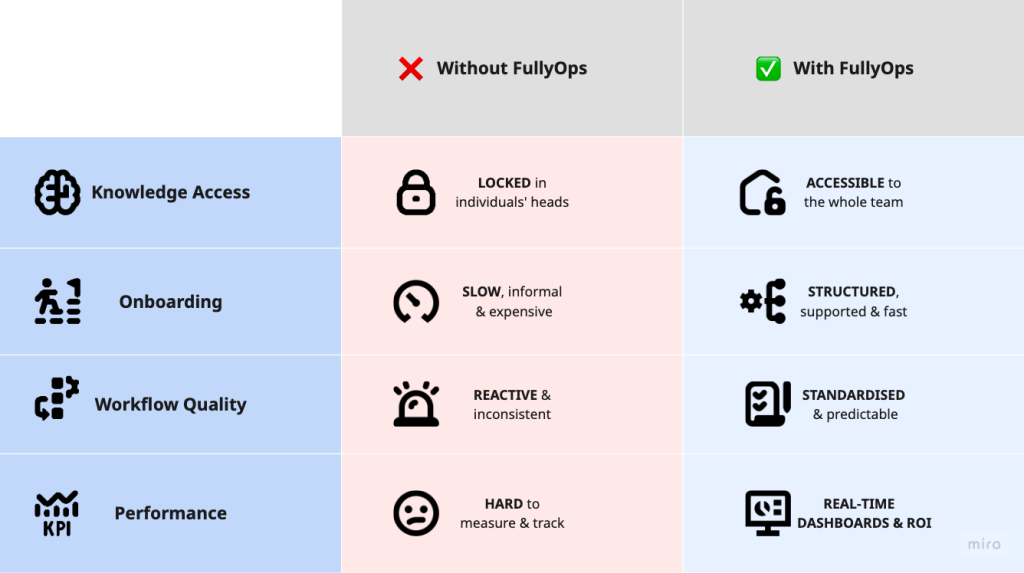 This is where FullyOps helps teams transition from dependency-based operations to knowledge-driven operations.